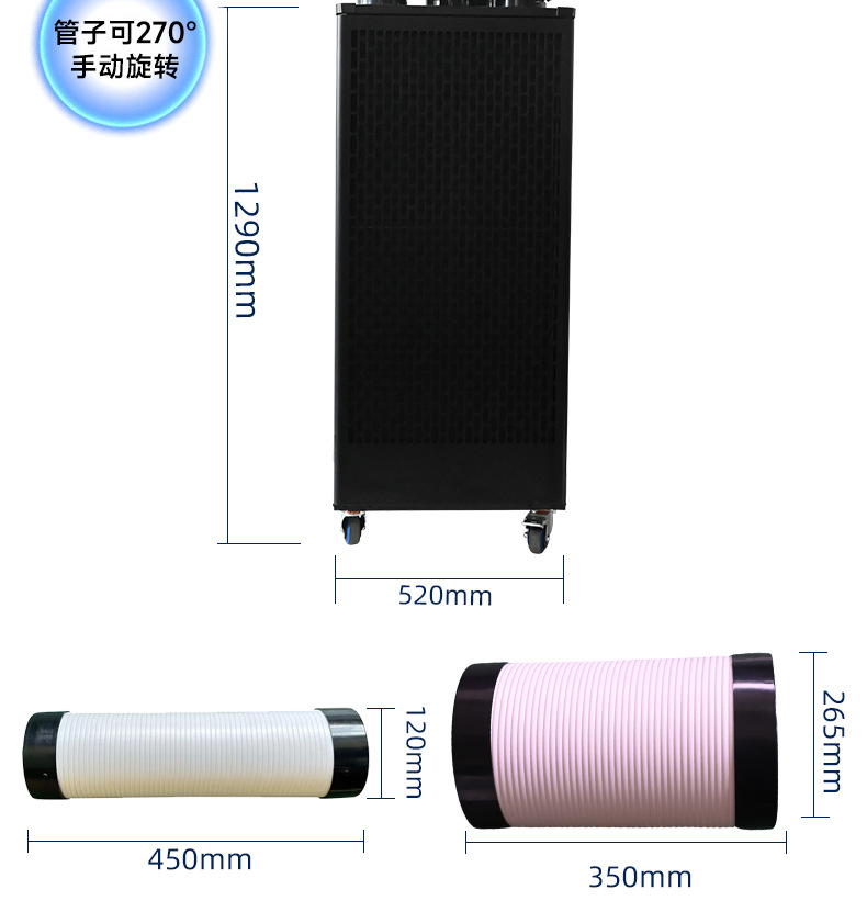 6、兩個(gè)冷風(fēng)口均可270度旋轉,適用于3-5個(gè)崗位的降溫
