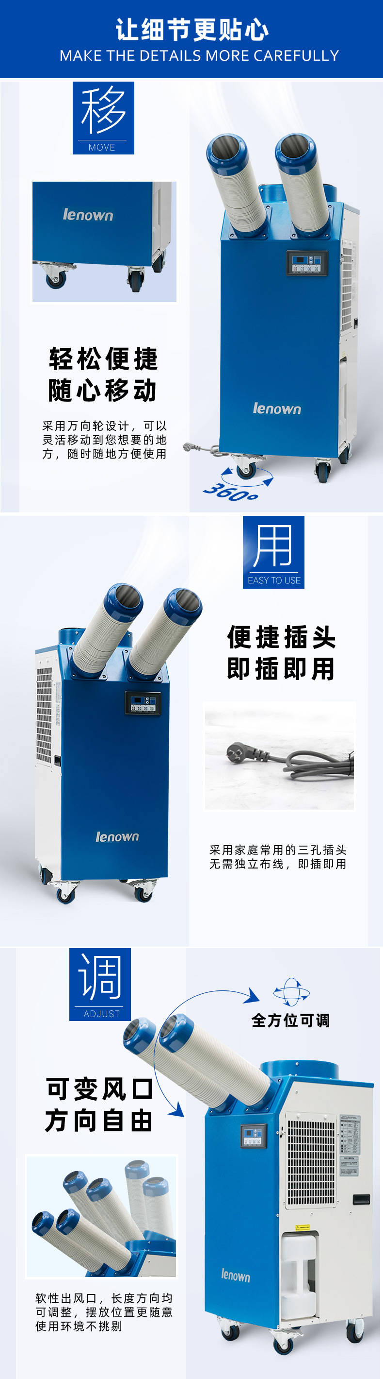 6、兩個(gè)冷風(fēng)口均可270度旋轉,適用于3-5個(gè)崗位的降溫