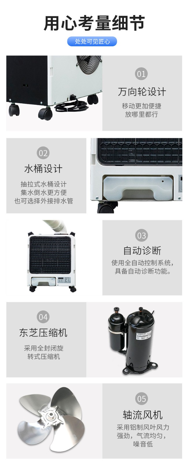 8、機身一體化設計,科學(xué)布局,可機內儲水桶積水.也可接水管排水,附帶除濕效果